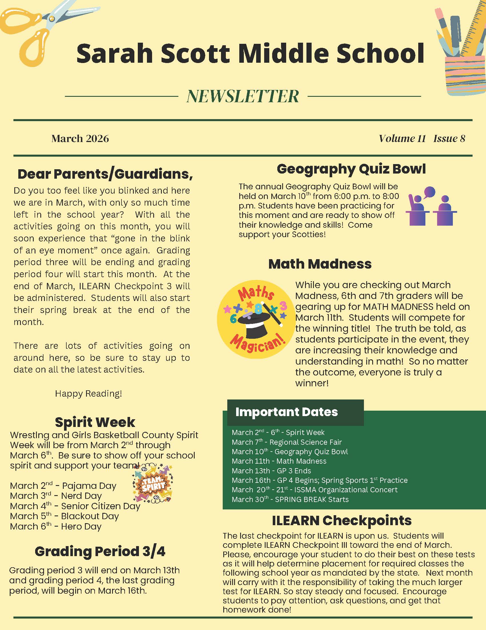 Sarah Scott Middle School - March Newsletter