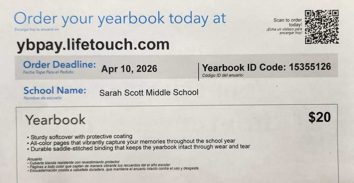 Sarah Scott Yearbook Order - Due April 10th- See information to order